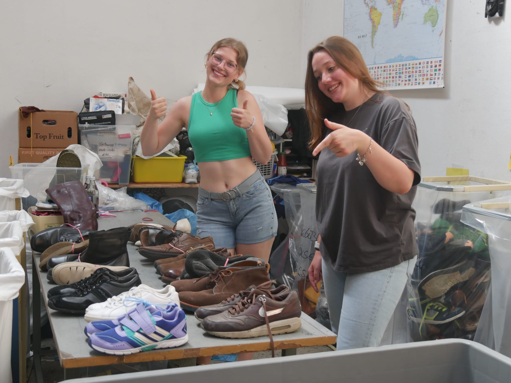 Wir verfügen über ein vielfältiges Angebot an Tätigkeiten: Ob bei der Sortierung, der Preisauszeichnung, der Betreuung unserer Ehrenamtsgruppen oder bei der Kaufberatung in unserem Seconhandkleider- und Weltladen "Anziehungspunkt" - da ist für jede und jeden etwas Passendes dabei. Hier kannst du in kurzen Viedos schauen, was du bei uns machen würdest: